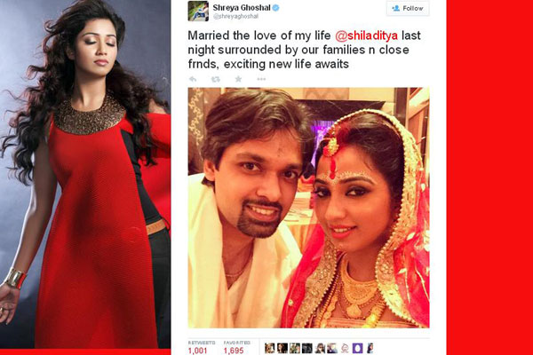 Popular playback singer - beautiful Shreya Ghoshal married her long time beau Shiladitya in a private ceremony on February 5. This she has revealed on her facebook and twitter handlers.