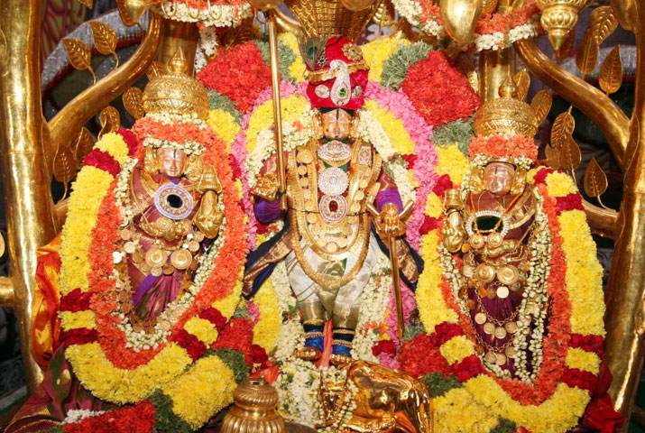 Sattumora, where the Srivaishnavacharyas render Divya Prabandha Parayanam before main deity.
