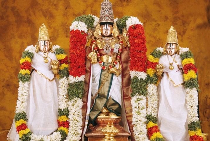 THOMALA: Decoration of Lord with flower garlands amidst chanting of Vedic mantras by temple priests.