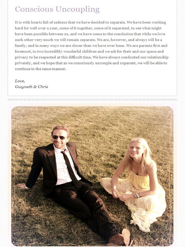 (Image source from: Gwyneth Paltrow and Chris Martin uncouple after a decade})