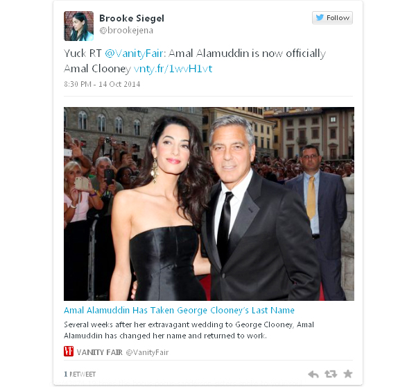 Her official profile page on her law firm’s website now reads “Amal Clooney,” signifying that the 36-year-old barrister has officially taken Clooney’s name.