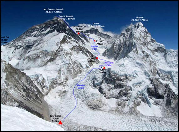 The route on Mount Everest