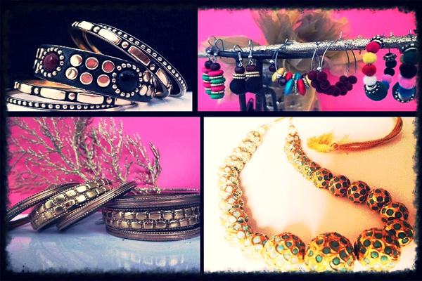 Jazz up your outfit with pop colored bangles and striking spiked jewelry. Pick your pop shade from pink, green, yellow, red and orange and totally dazzle the dandiya.