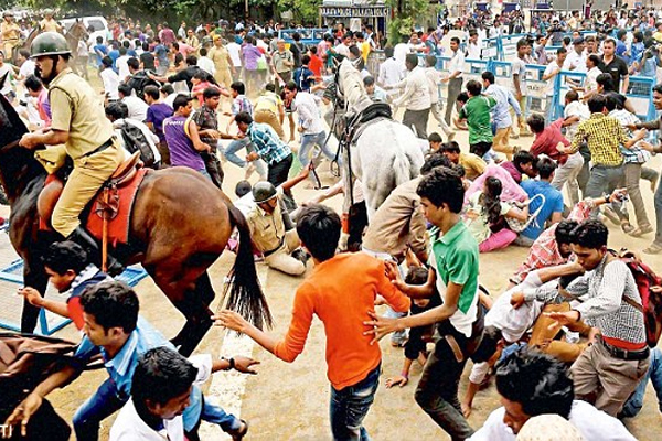 A stampede-like situation erupted outside the stadium. People broke barricades, running wildly inside the venue. The police had to resort to a baton charge to quell the irate gathering. Several people were injured as the Mounted Police and Rapid Action Force (RAF) were called in to bring the situation under control.