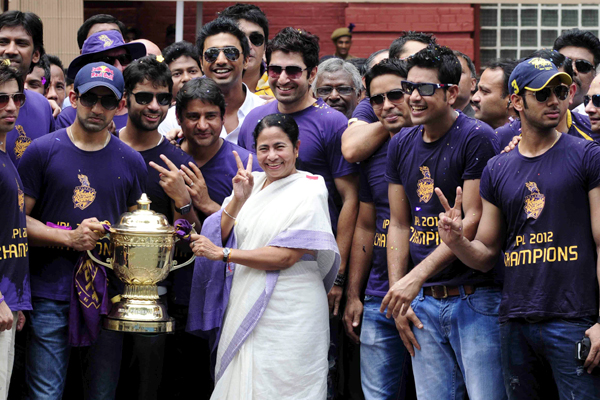 (Image source from: Kolkata goes ecstatic as KKR returns with IPL trophy})