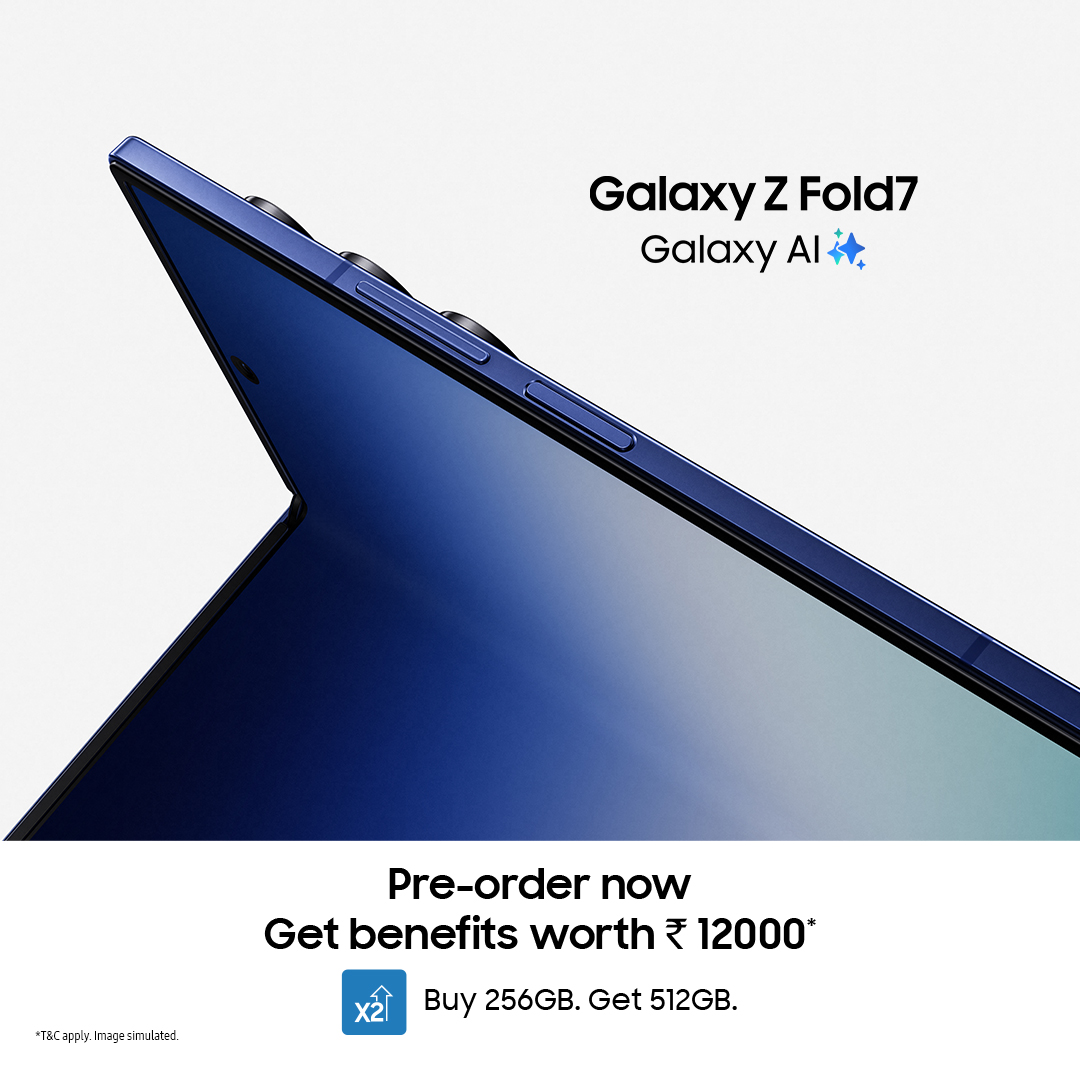 The Galaxy Z Fold 7 is currently available for pre-order on Samsung&039;s official website, and sales are expected to begin on July 25. As part of a pre-order promotion, customers have the opportunity to purchase the 12GB + 512GB version for the same price as the 256GB model. This special deal is available until July 12. The dual-SIM Samsung Galaxy Z Fold 7 uses Android 16 with One UI 8 on top. It has an 8-inch QXGA+ (1,968 x 2,184 pixels) Dynamic AMOLED 2X Infinity Flex Display on the inside, which has a refresh rate of 120Hz that adjusts as needed, a pixel density of 368ppi, and a maximum brightness of 2,600 nits. The phone has a 6.5-inch full-HD+ (1,080 x 2,520 pixels) Dynamic AMOLED 2X cover display with a pixel density of 422ppi and a refresh rate of 120Hz that adjusts as needed. The external display has a 21:9 aspect ratio. The cover display of the device is protected by Corning Gorilla Glass Ceramic 2, while the back is protected by Corning Gorilla Glass Victus 2. In addition, the Galaxy Z Fold 7 includes a Snapdragon 8 Elite for Galaxy chipset and can have up to 16GB of RAM. It is made with an Armor FlexHinge. The device comes with many AI features like Gemini Live, AI Results View, Circle to Search, Drawing Assist, and Writing Assist.