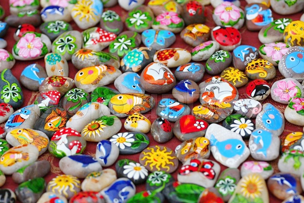7.Color stones with water proof colors and write the names of your family members/ draw the images and place it in a glass of water/bowl.