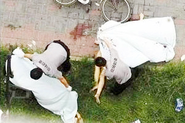 Hair-raising pictures of the incident published in Chinese daily showed a blood spattered couple lying on the sidewalk.