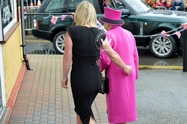 The 37-year-old shop girl Kerry Bickerstaff insist hers was only an “instinctive and caring gesture as she shepherded the Queen, 87, along the street.”