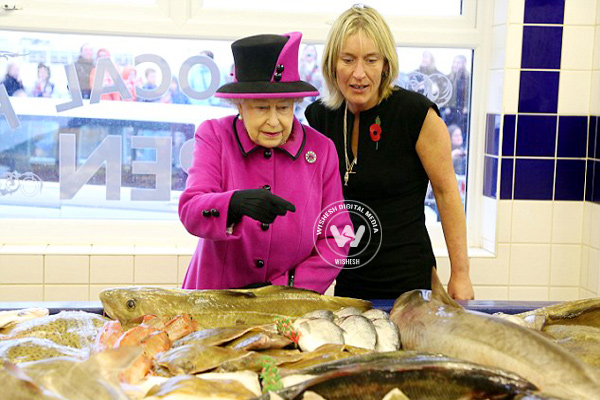 A shop manager is under fire for apparently having touched Her Majesty while guiding her into her family-run seaside fish market.