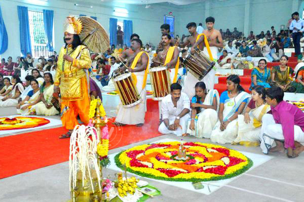 The occasion was marked by several traditional entertaining presentations. Women performed Thiruvathira, a folk dance where the performers are dressed in typical Kerala style with mundu and neriyathuand the hair bun adorned with jasmine garlands, to the accompaniment of Thiruvathira paattu (folk song) in honor of the emperor.