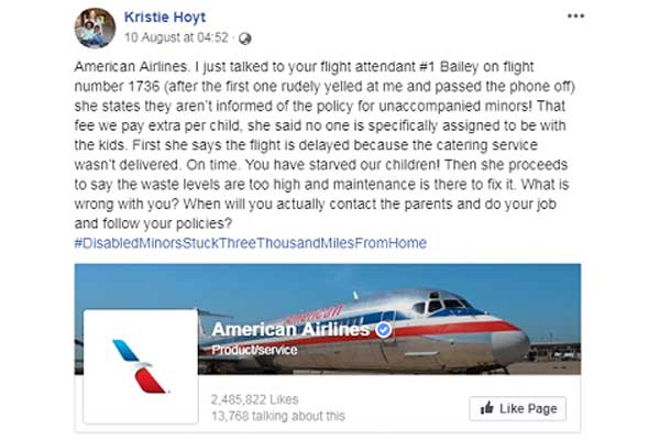 Kristie Hoyt, a mother of one of the claimed she had to contact the airline crew to find out what was happening to her kid as the airline did not update her. She also took to Facebook addressing the issue.