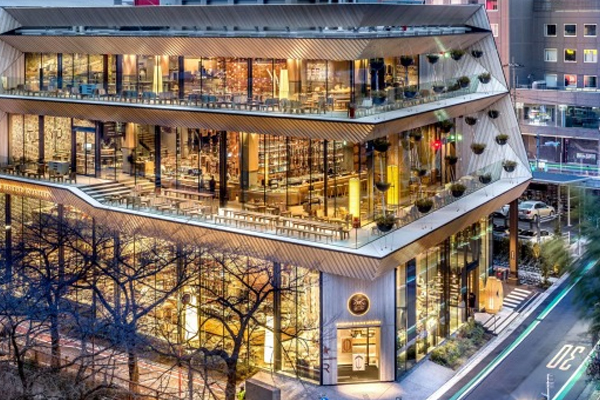 In total, its areas is 35,000 square feet, it has taken up five floors with three main coffee bars.