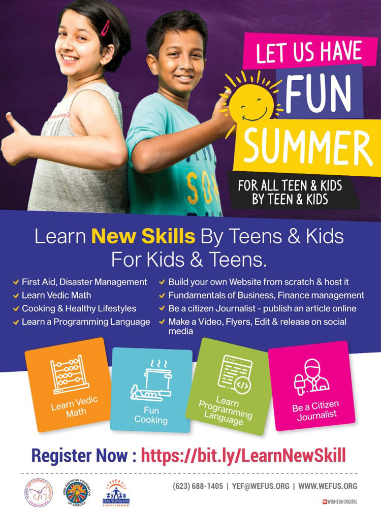 The best part of the entire endeavour was the fact that the volunteers of YEF were able to get instant support from many professionals, experts, achievers from community from many fields helping in making these activities happen including identifying an expert teacher for Vedic Maths, they were able to convince a VP of a financial enterprise to teach Photography! A Harvard educated and financial expert to handle business, finance, investment strategies; an IITian to take Python and Programming languages; Phoenix Women’s commissioner to help in Cooking, Health, Yoga classes, and Art by a renowned Artist, and so many other experts who are ready to help in this endeavour of these youths benefiting community big time.