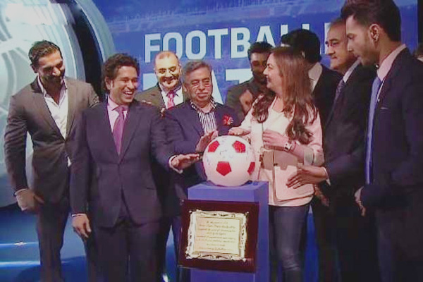 Tendulkar, Neetu Ambani, John Abraham, Abhishek And Ranbir launched the India Super league of football game.